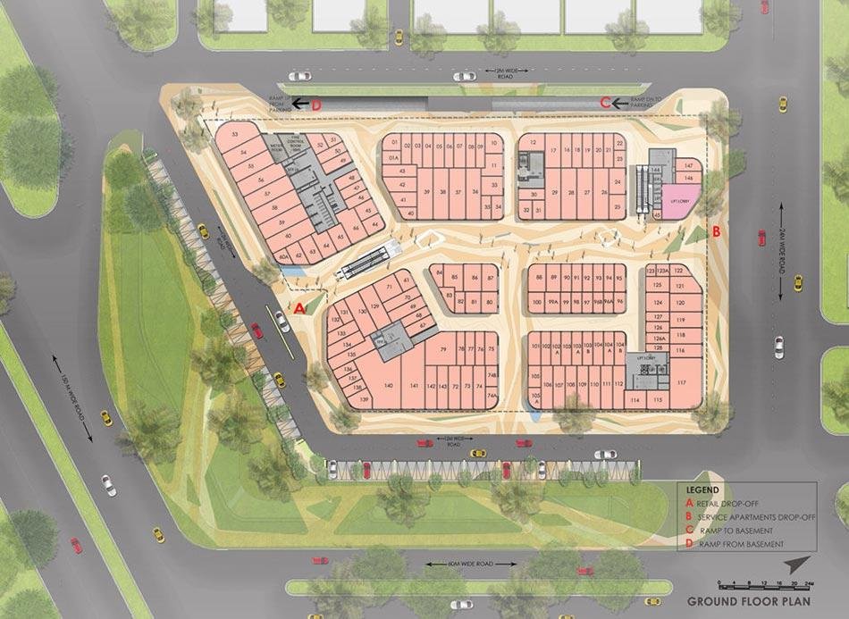 • Unit Types: Retail Shops, Food Courts, Service/Studio Apartments