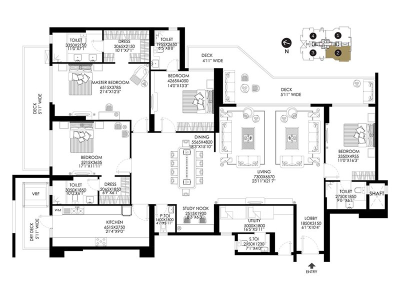 • Additionally, 4BHK and 5BHK Penthouses spread across an area ranging from 4559 sqft to 6160 sqft.