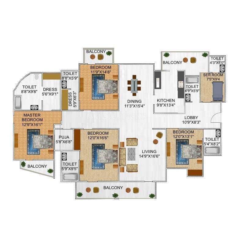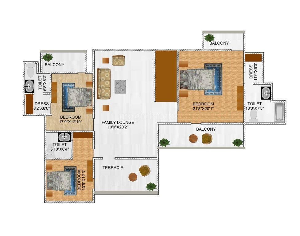 • 4 BHK Flats: Available in sizes of 3390 sq. ft. super area. Each unit is designed to maximize space and functionality, featuring well-equipped bathrooms and spacious balconies for ample ventilation.