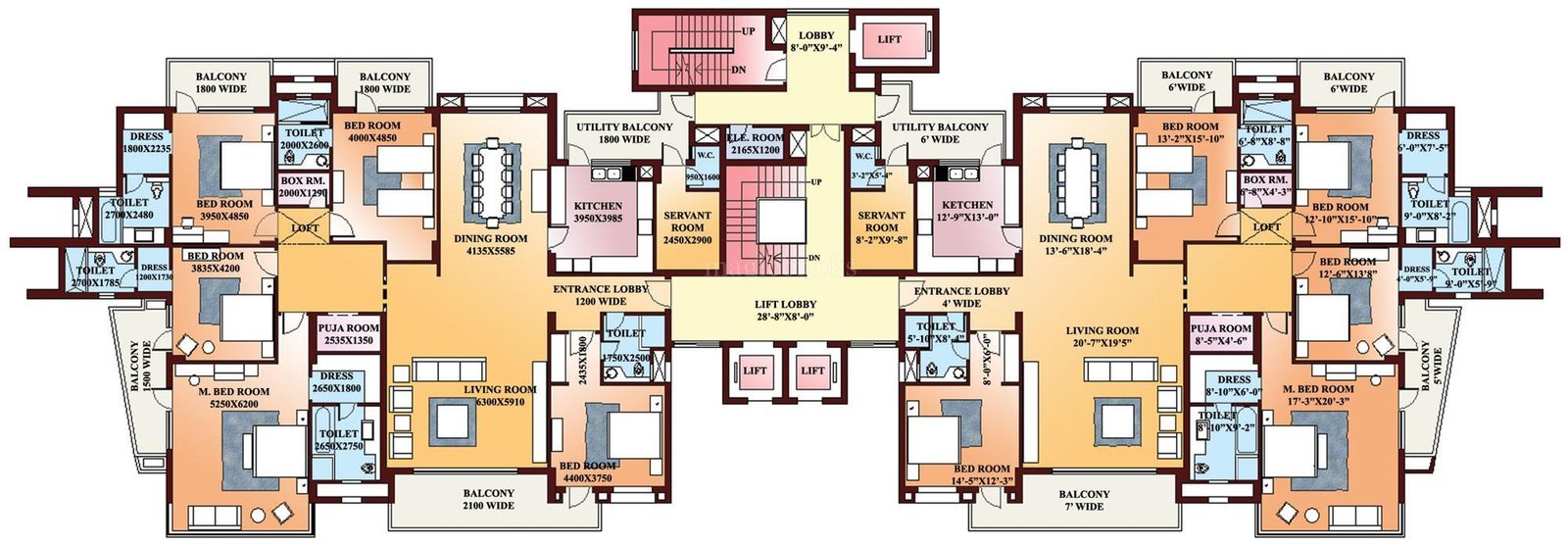 • Unit Types: 3 BHK, 4 BHK, 5 BHK duplexes, and penthouses